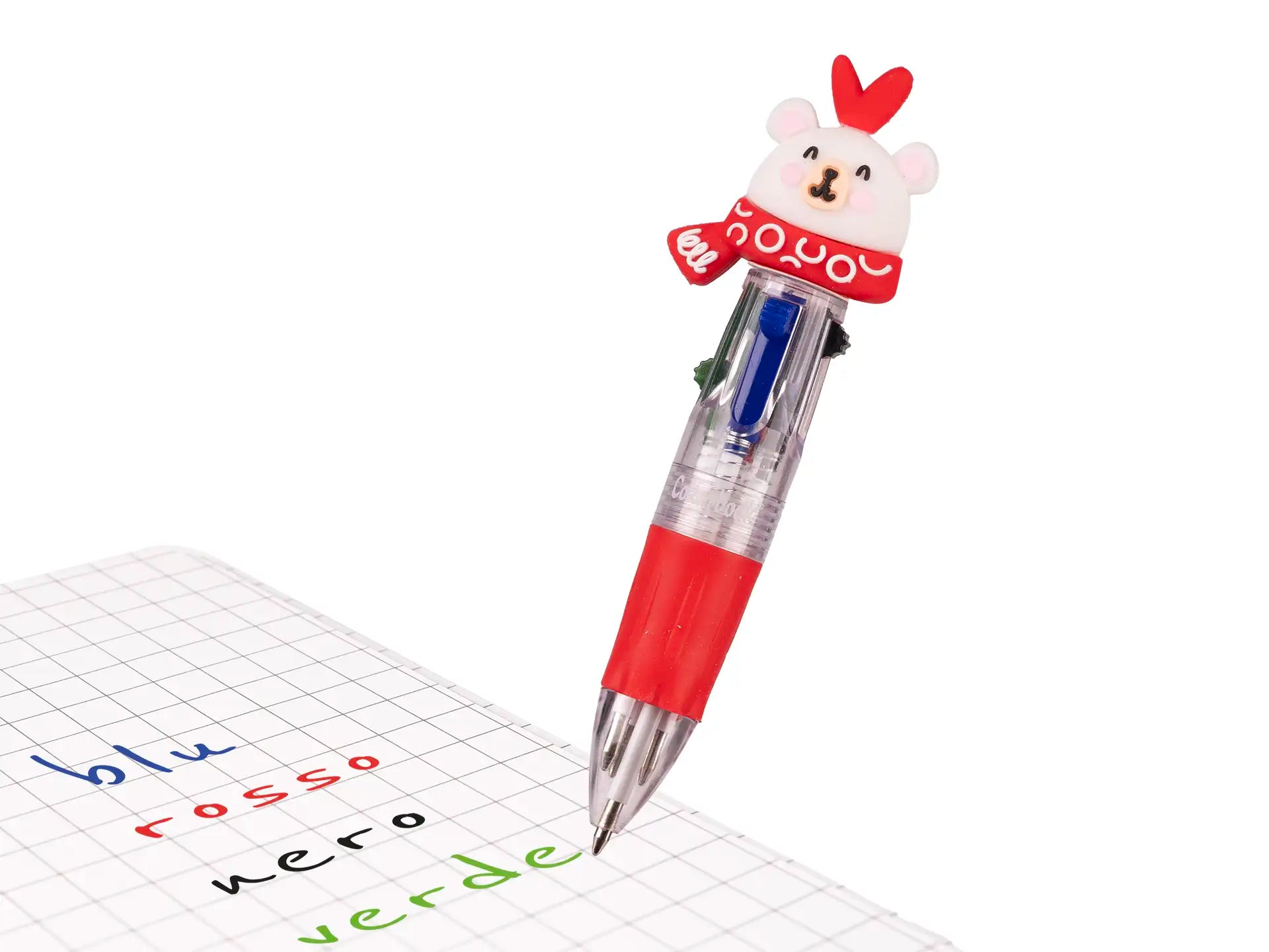 Scopri la Mini Penna a Sfera 4 Colori della collezione natalizia La Fabbrica degli Elfi, uno strumento di scrittura versatile e affidabile. Dotata di quattro inchiostri vibranti—rosso, nero, verde e blu—consente di passare rapidamente tra i colori grazie al pratico sistema di apertura a scatto. Le dimensioni compatte (7 cm di altezza e 1,5 cm di larghezza) garantiscono un'impugnatura ergonomica e stabile, perfettamente proporzionata per le mani dei bambini. Realizzata con attenzione ai dettagli, questa penna combina funzionalità e design festivo, rendendola il regalo natalizio ideale per chi ama esprimere la propria creatività attraverso il colore e la fantasia.